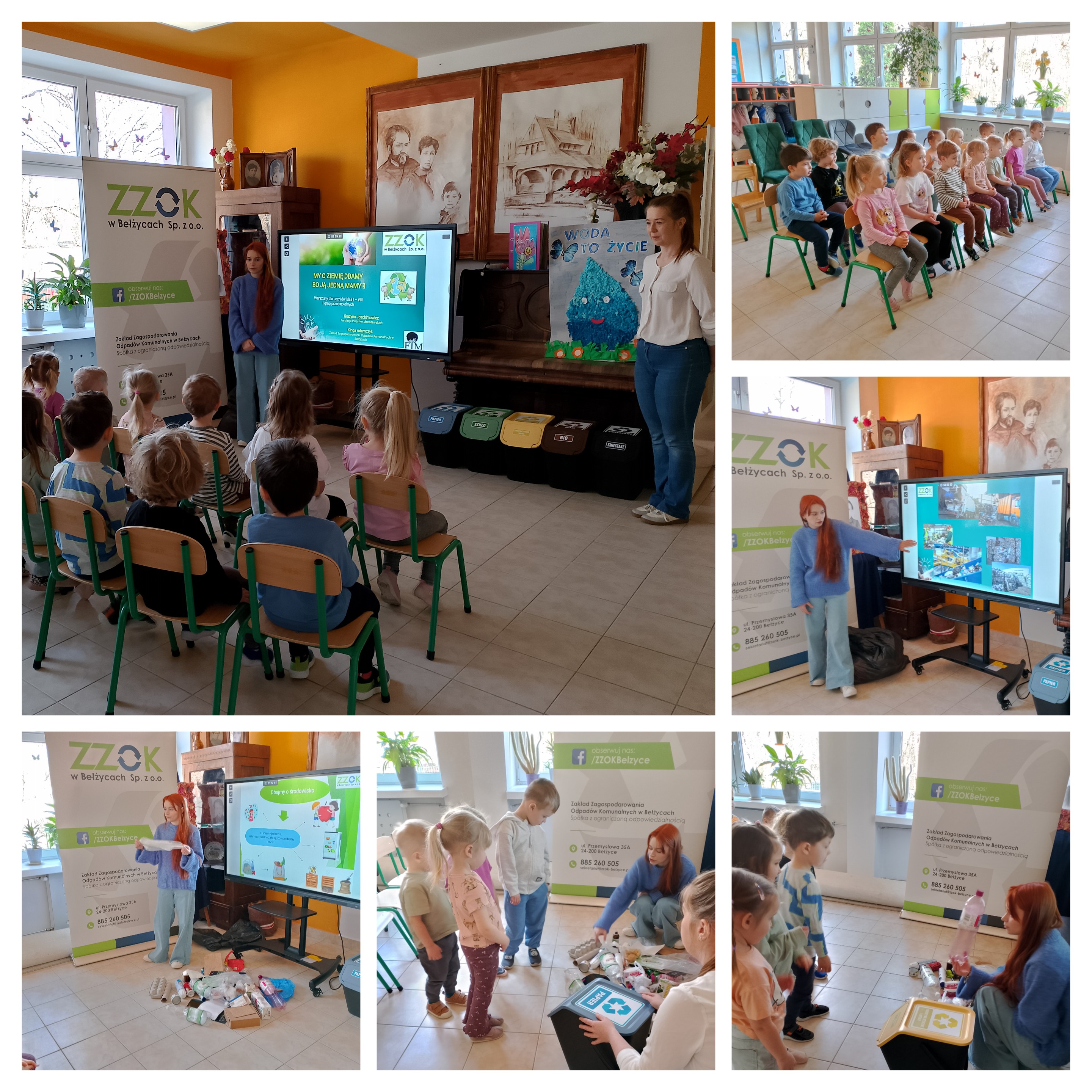 W czwartek w naszym przedszkolu odbyły się warsztaty ekologiczne prowadzone przez panie z ZZOK Bełżyce. Panie opowiadały o tym w jaki sposób należy segregować śmieci, do jakich pojemników. Panie wyjaśniły dzieciom gdzie trafiają śmieci zabrane przez śmieciarki z naszych domów. Na koniec warsztatów dzieci wspólnie z paniami segregowały śmieci do odpowiednich pojemników.