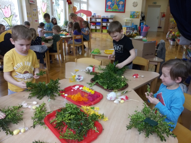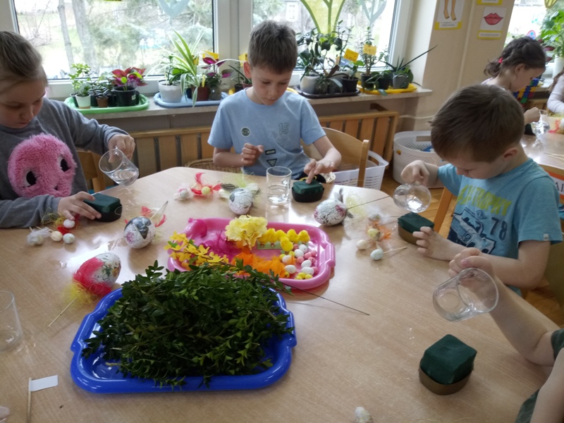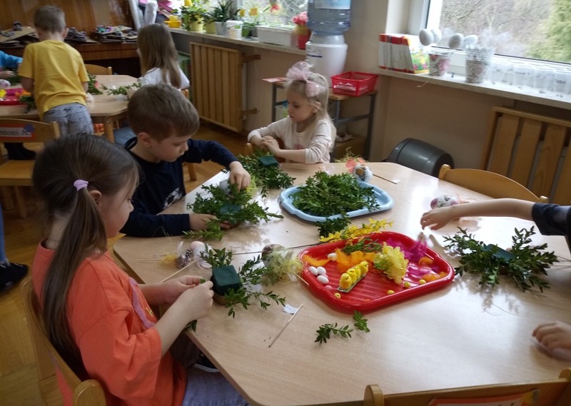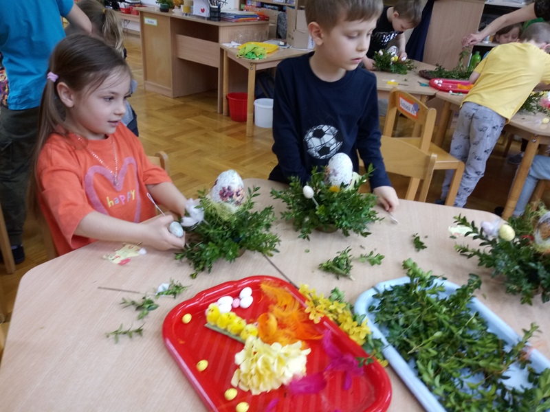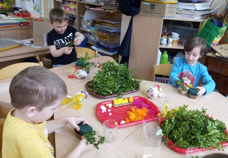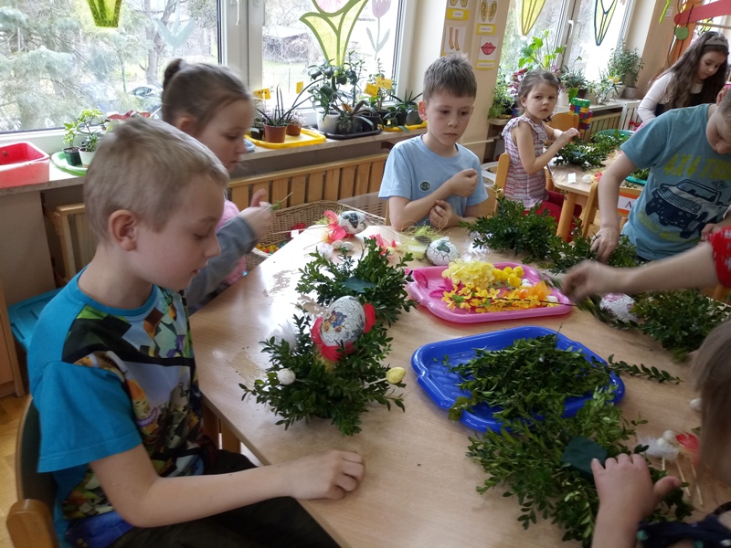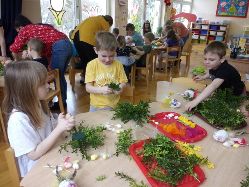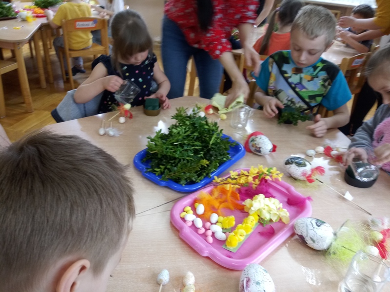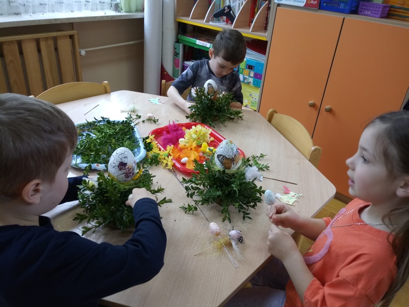 Zgodnie z tradycją, przedszkolaki wykonały stroiki wielkanocne, które będą przepiękną dekoracją świątecznych stołów.