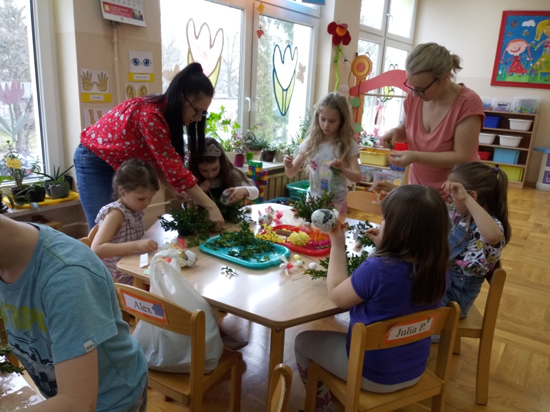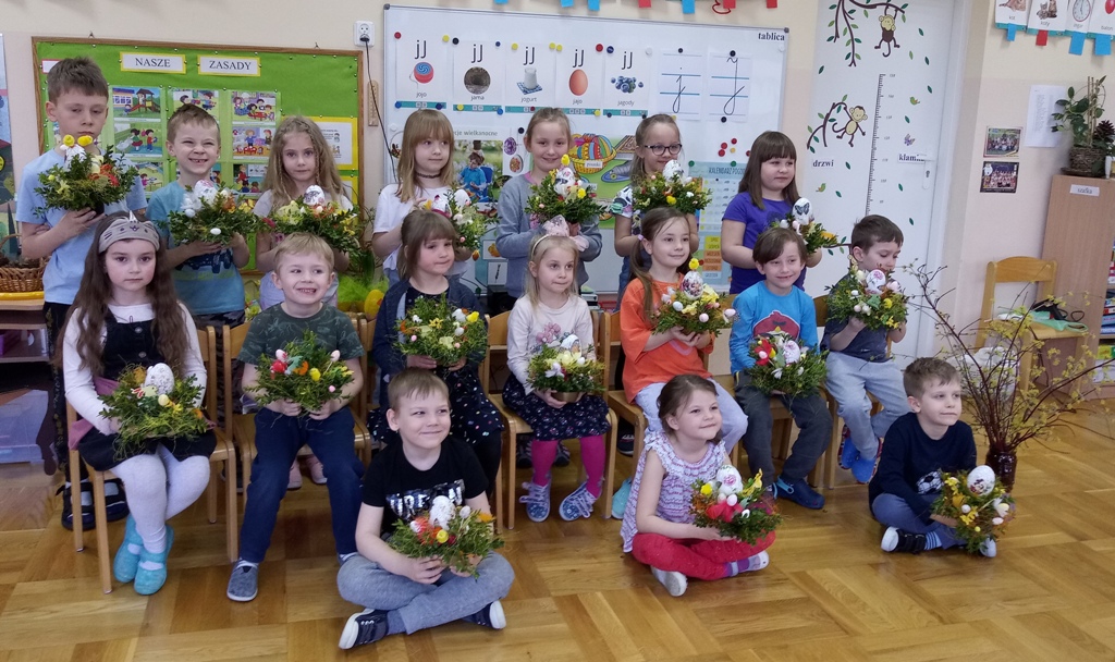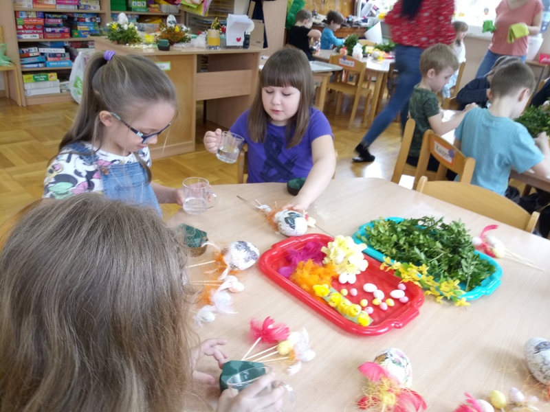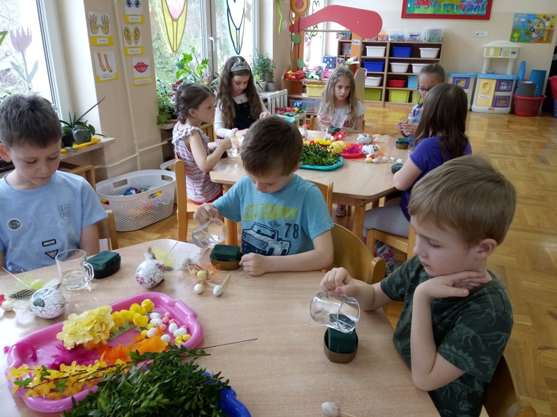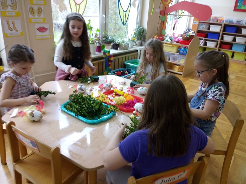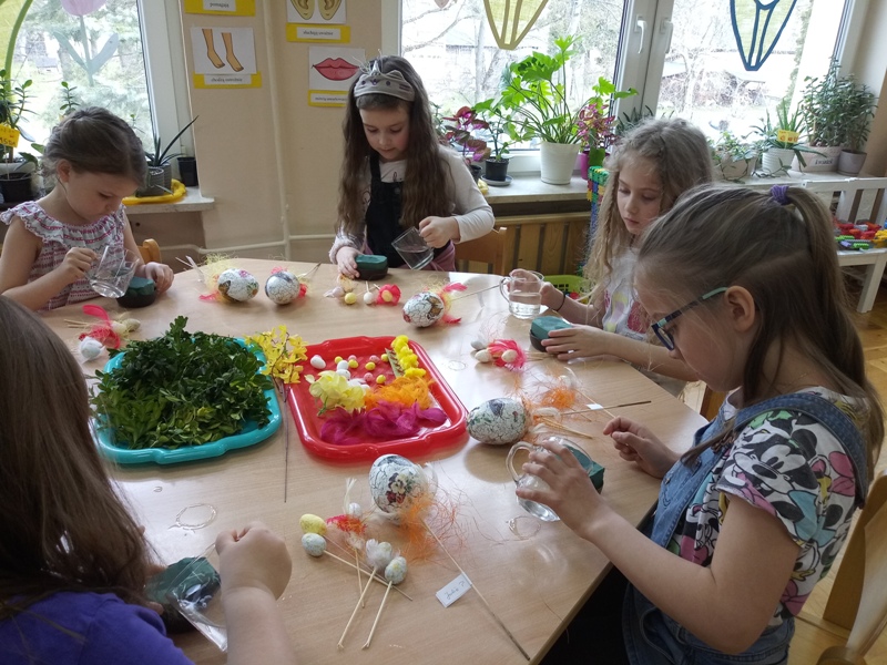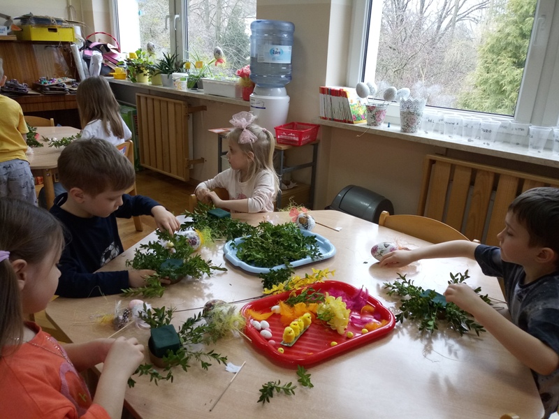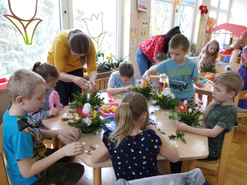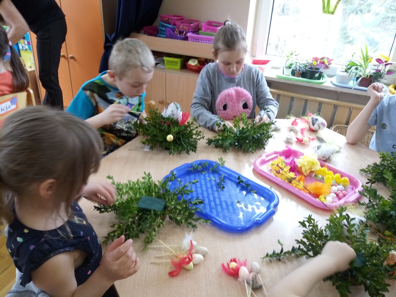 Zgodnie z tradycją, przedszkolaki wykonały stroiki wielkanocne, które będą przepiękną dekoracją świątecznych stołów.